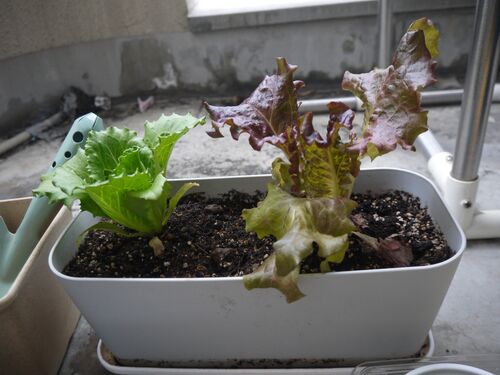 レタス、サニーレタス大きくなりました。 4月25日と5月4日の比較です。いやぁ、育つと嬉しいです。 奥さんが間引きをしたラディッシュも少し大きくなりました。 4月28日の間引き前が、 5月4日の写真が、 新しい葉っぱが出てきました。成長を見届けている感じ…