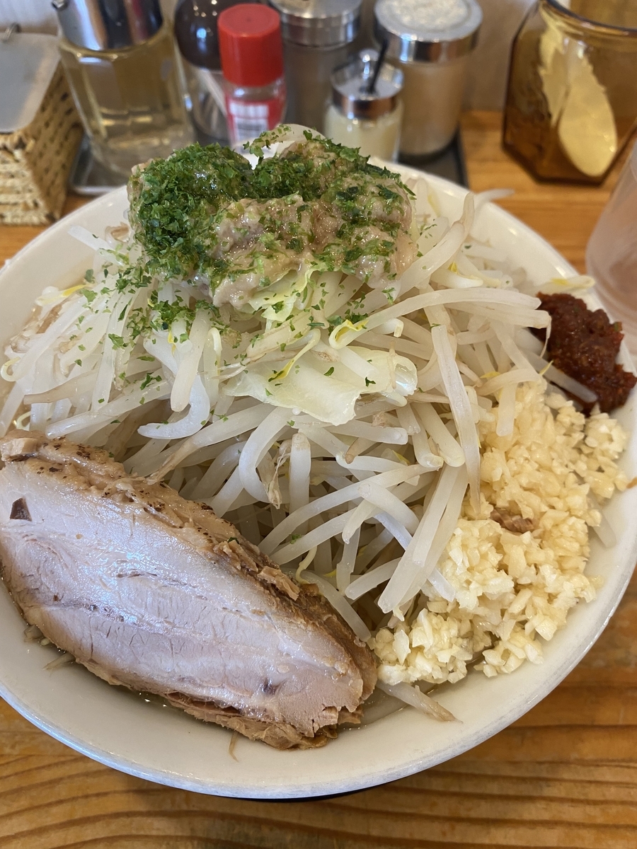 そして、今回私が頼んだのが、味噌ジャンク(900円)野菜あぶら普通、ニンニクマシです。どどん!